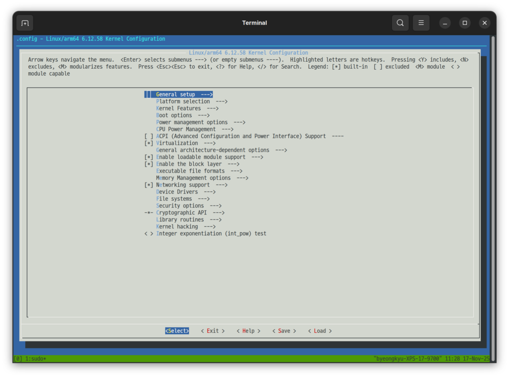 ์ด๋ฅผ ์ํด์ userpatches/kernel/rk35xx-vendor-6.1 ๋๋ ํ ๋ฆฌ์ ์๋์ ๊ฐ์ด ํจ์น ํ์ผ์ ๋ณต์ฌํด ์ค๋๋ค. ์ด ํจ์น ํ์ผ์ kernel-config ๋ช ๋ น์ ์ด์ฉํด์ ๊ธฐ์กด https://mirrors.edge.kernel.org/pub/linux/kernel/projects/rt/6.1 ์์ ๋ฐ์์จ rt ํจ์น ํ์ผ์ ์ ์ฉํ ๊ฒ์ผ๋ก, vendor ์ปค๋์ ๋ง๊ฒ๋ ๋ช๊ฐ์ง๋ฅผ ์์ ํ์์ต๋๋ค. ๊ธฐ์กด ์ปค๋์์ ๋ช๊ฐ์ง ์์ ํ๊ฒ ์์ด์ rt ํจ์น๋ฅผ ๊ทธ๋ฅ ์ ์ฉํ๋ฉด ์๋ฌ๊ฐ ๋ฐ์ํฉ๋๋ค.