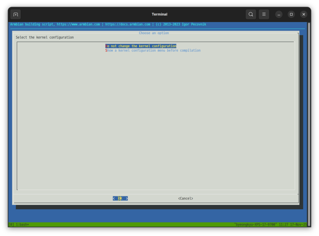 $ ./compile.sh BOARD=orangepi5-plus BRANCH=vendor RELEASE=noble BUILD_DESKTOP=no BUILD_MINIMAL=no VENDOR=armbian-kft REVISION=25.8.2 CPUTHREADS=12 PACKAGE_LIST_BOARD="net-tools wireless-tools vim" build